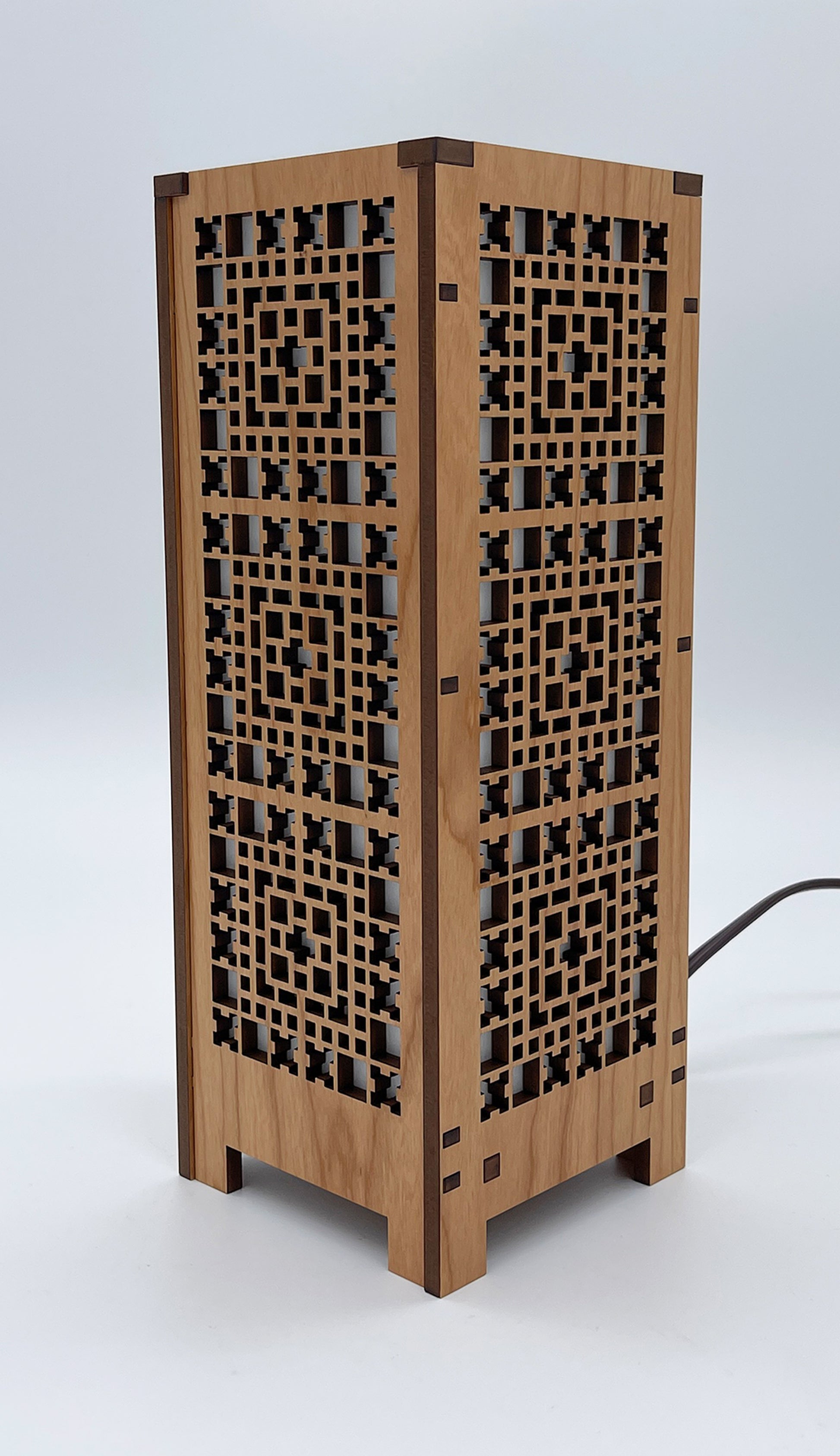 Our lightboxes are made with cherry veneered MDF and heat resistant shoji paper. Each lightbox includes an inline on/off switch on an 8' cord. The candelabra base also includes a 4 watt LED tubular bulb. This mini version of our lightbox measures 4-1/4" x 4-1/4" x 11-1/2" . All AlaModerna products are made in the USA.