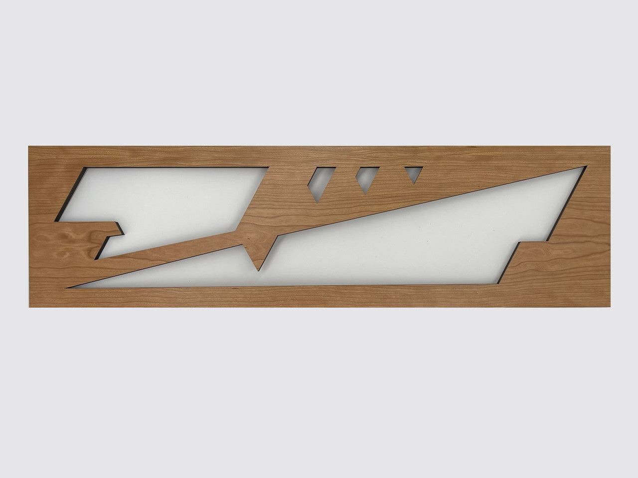 Our perforated boards are made with cherry veneered MDF. This exciting addition to your home adds just the right amount of detail to energize your living space. It measures 30" long x 8-1/2" tall x 1/2" thick and weighs 1.6 lbs. Includes two sawtooth hangers for installation. All AlaModerna products are made in the USA.