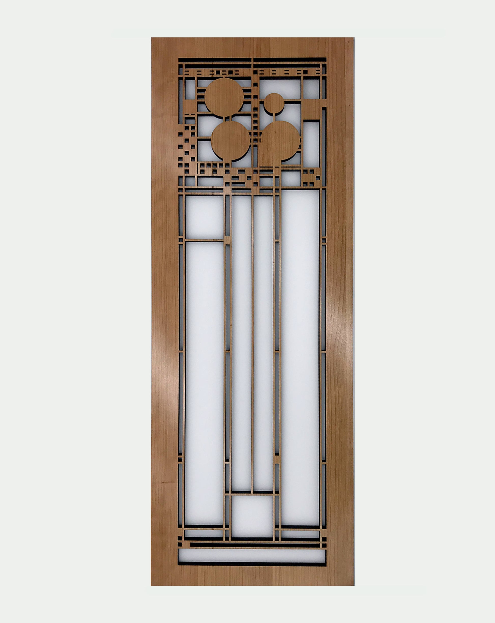 Avery Coonley commissioned Frank Lloyd Wright to build the Playhouse for his wife, Queene Ferry, after Wright built the main residence for the couple. Ferry had already built one smaller progressive school and was very interested in the education of children. The Playhouse features one of Wright’s most playful art glass window designs with asymmetrical geometric designs and suggestions of flags, balloons, and confetti. The brightly colored windows bring to mind a parade that Wright referred to as a “kinder symphony.” Since the Playhouse was intended for children’s education and performances, this fun theme was entirely appropriate.