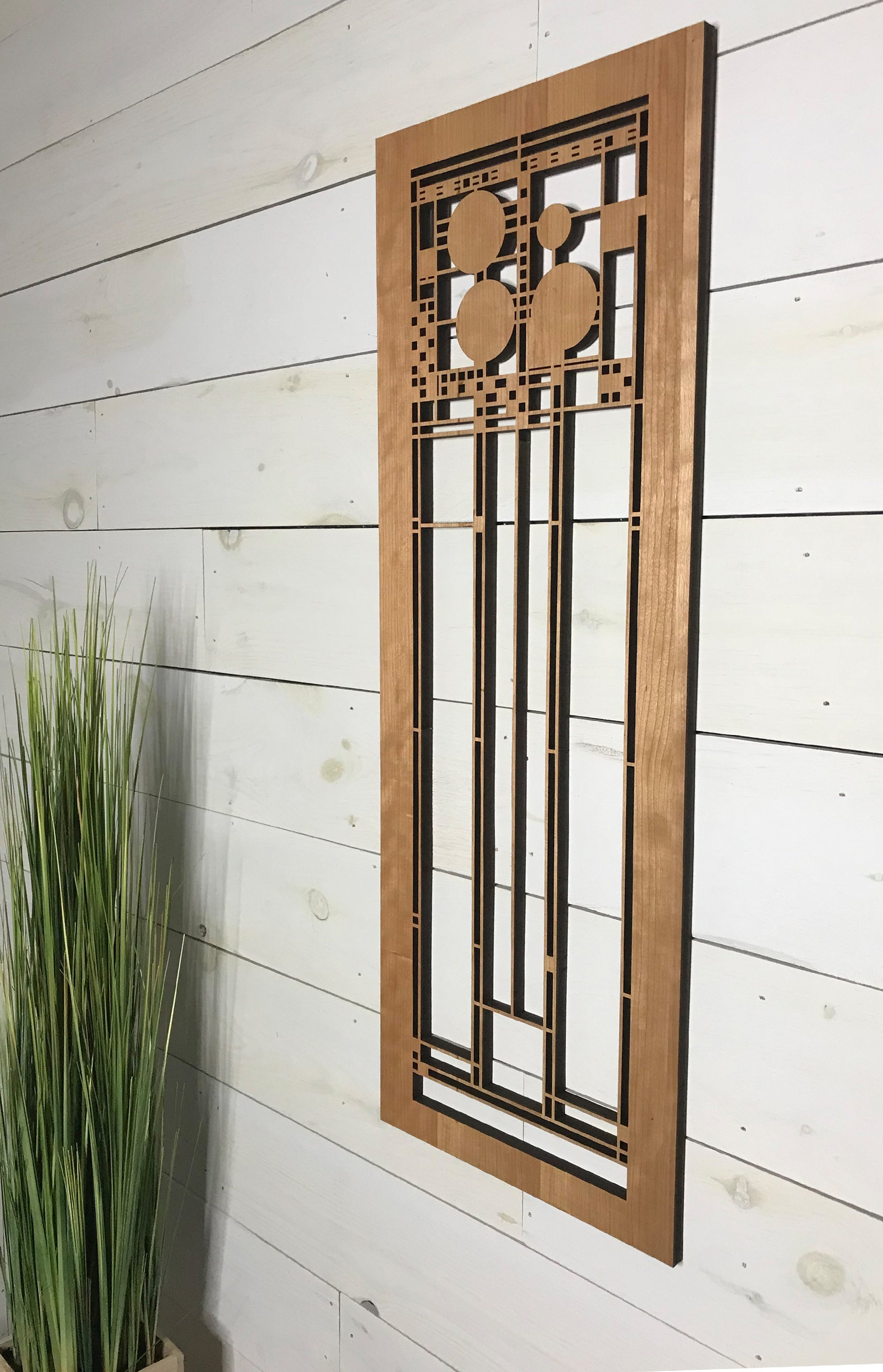 Our wall elements are made with cherry veneered MDF. This beautiful wall element measures 11-1/2" x 31-1/2" x 1/2". Includes one sawtooth hanger and hardware. All AlaModerna products are made in the USA.
