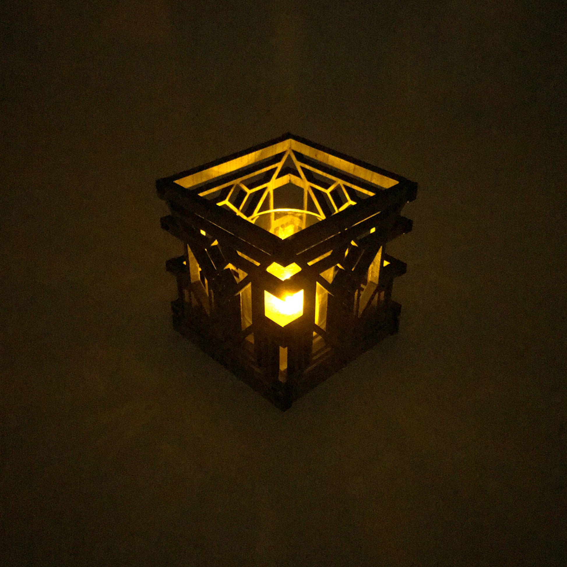 Our votive holder is made from cherry veneered MDF with 1/4" thick walls. This decorative addition to your home includes a glass votive holder and a flickering battery-operated tea light. 4" square. All AlaModerna products are made in the USA.