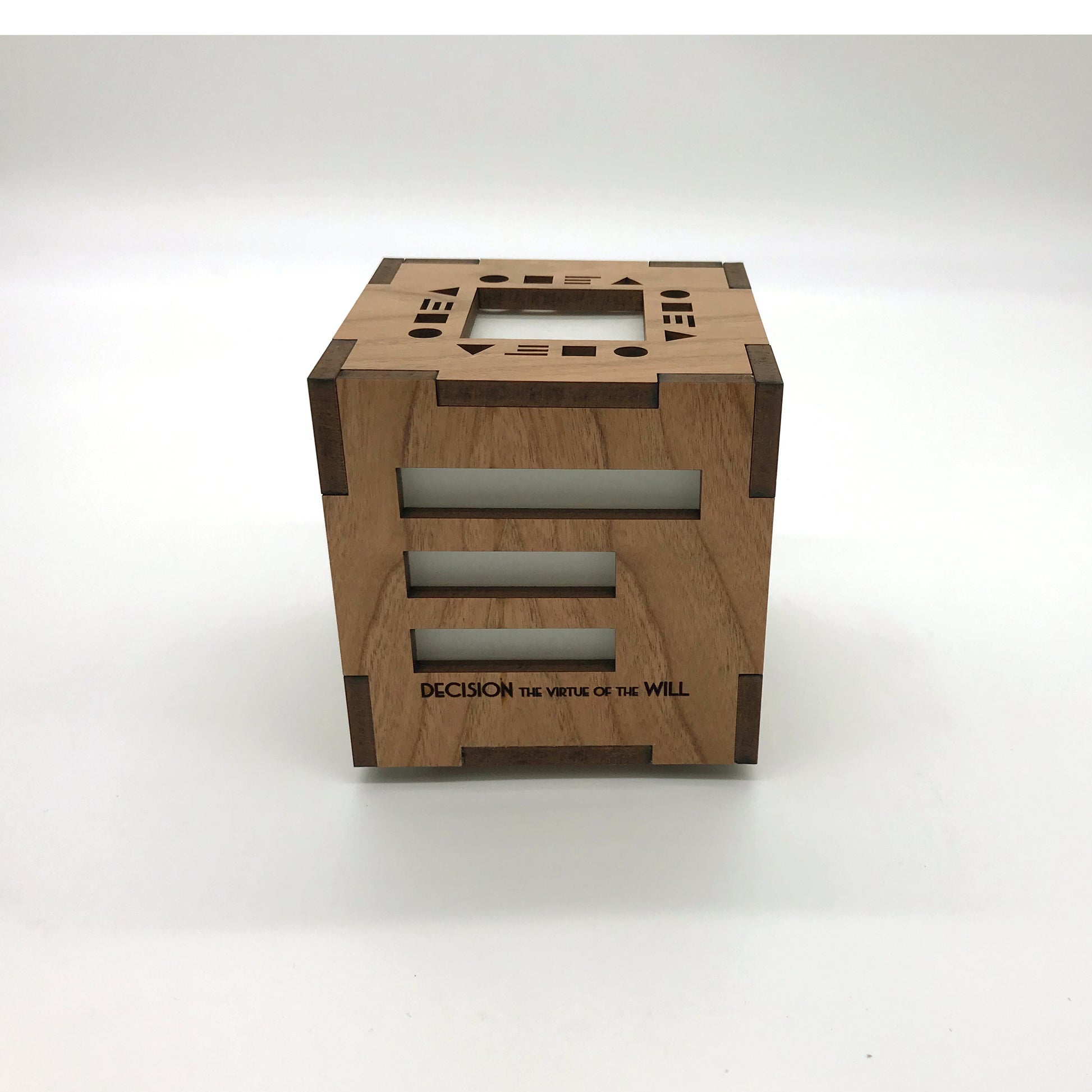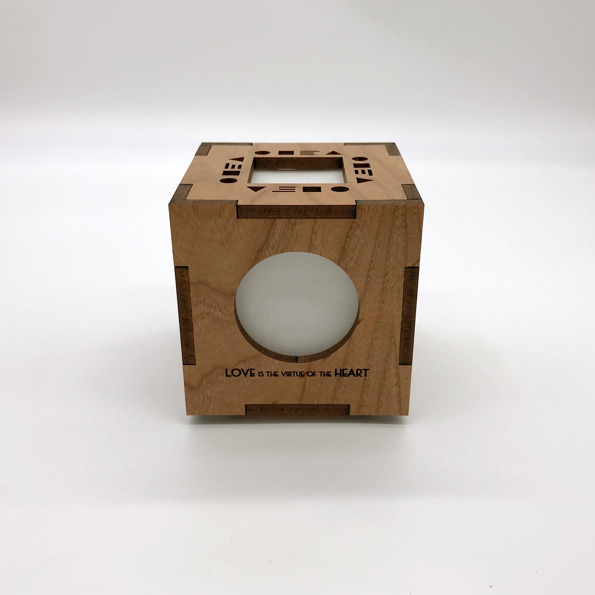 Our organic commandment cube light is made from 1/4" thick cherry veneered MDF. This quaint accent light will definitely spark up an engaging conversation. Includes a battery operated flickering tea light. Measures 4" square. All AlaModerna products are made in the USA.
