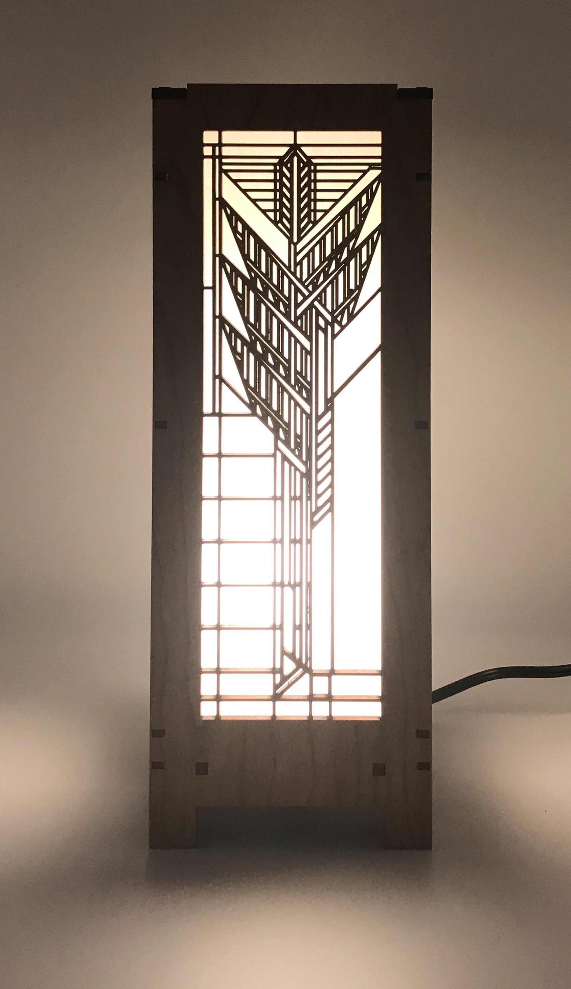Our lightboxes are made with cherry veneered MDF and heat resistant shoji paper. Each lightbox includes an inline on/off switch on an 8' cord. The candelabra base also includes a 4 watt LED tubular bulb. This mini version of our lightbox measures 4-1/4" x 4-1/4" x 11-1/2" . All AlaModerna products are made in the USA.